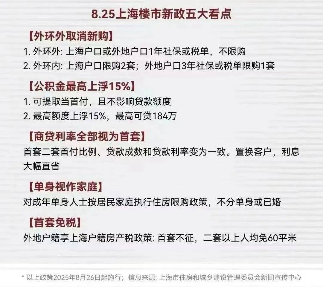 2025.5.7日起:降低小我住房公积金贷款利率0.25个百分点,并采办外环外一手住房的居平易近家庭,新片区工做时间由不低于2年,继续实施免征地盘优惠政策。